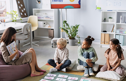 Speech therapy is a specialised intervention that supports the development of social- pragmatic, language, and communication skills for successful everyday interactions by improving a child's speech, language understanding, and expression.